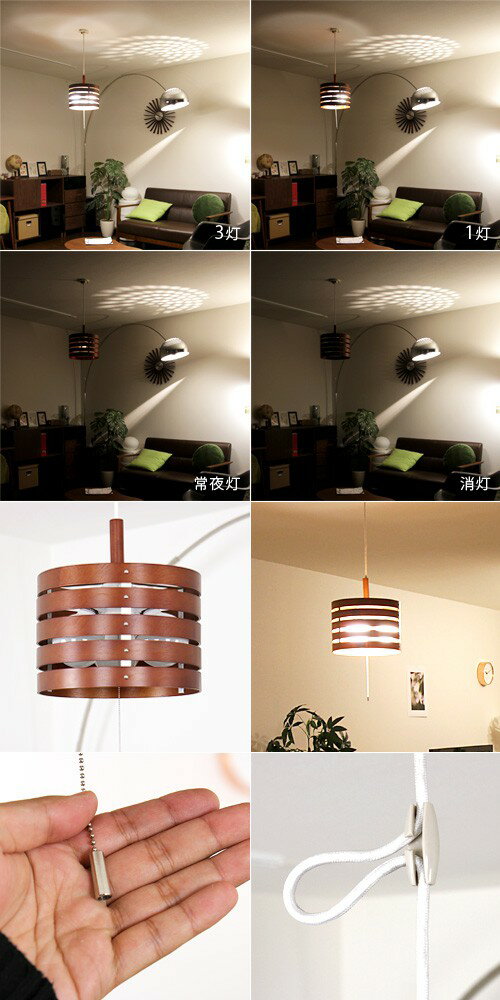 商品サイズ φ290xh210(mm) 重量0.9(kg)電球含まず 壁スイッチ※3灯→1灯→常夜灯→消灯 素材 プライウッド・スチール カラー ブラウン・ナチュラル・ブラック・ホワイト 仕様 口金e26/電球付属しません。