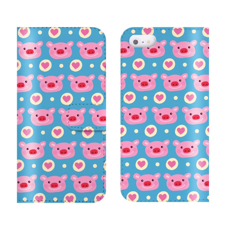 iPhone5 / 5s ケース 手帳型 送料無料 ブタ ヒヨコ マルチ パターン アニマル 豚 ひよこ 動物 キャラクター ハート ブルー ピンク レッド パープル グリーン イエロー シンプル カワイイ オシャレ