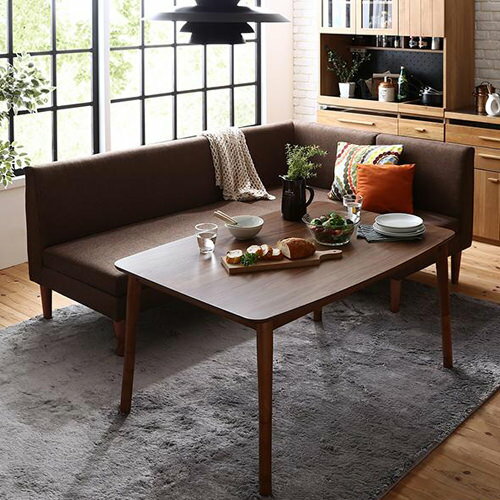高級木材である天然木ウォールナット材を使用したテーブルは、落ち着いた色合いが魅力的なデザインで流れるような木目や木の風合いをお楽しみいただけます。