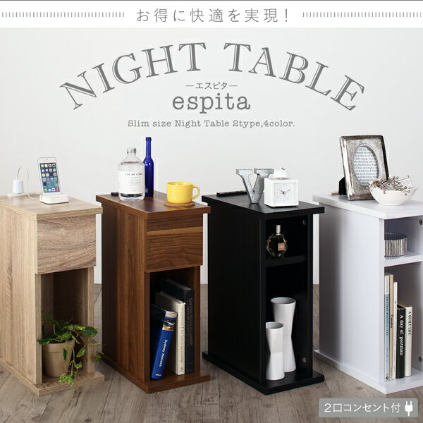 キーワードベッドサイドテーブル オープンタイプ 幅20 ナイトテーブル スリム おしゃれ A4サイズ収納 雑誌 絵本収納 バリエーション ●引出しタイプ ●オープンタイプナイトテーブル espita エスピタ オープンタイプ W20 バリエーション ●引出しタイプ ●オープンタイプ