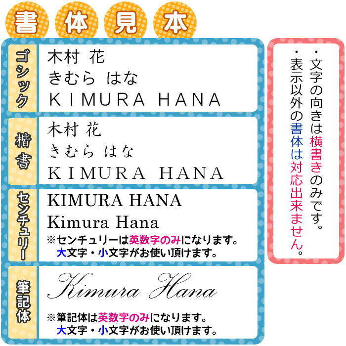 その他・お名前入れについて ■かな・漢字で全角20文字、半角英数で28文字程度まで入れることが出来ます。